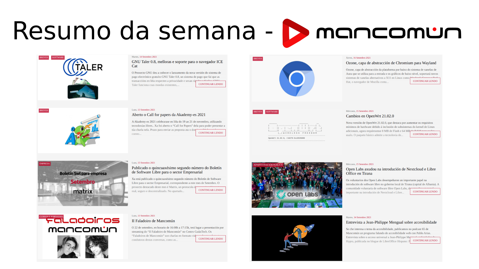 Resumen de las noticias que nos han llamado la atención esta semana en el Portal de Mancomún y un rápido repaso del boletín y podcast publicado.
