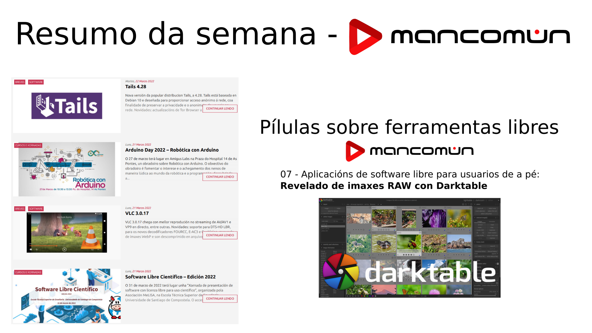 Resumen de las noticias que nos han llamado la atención esta semana en el Portal de Mancomún y un rápido repaso del artículo tic publicado.