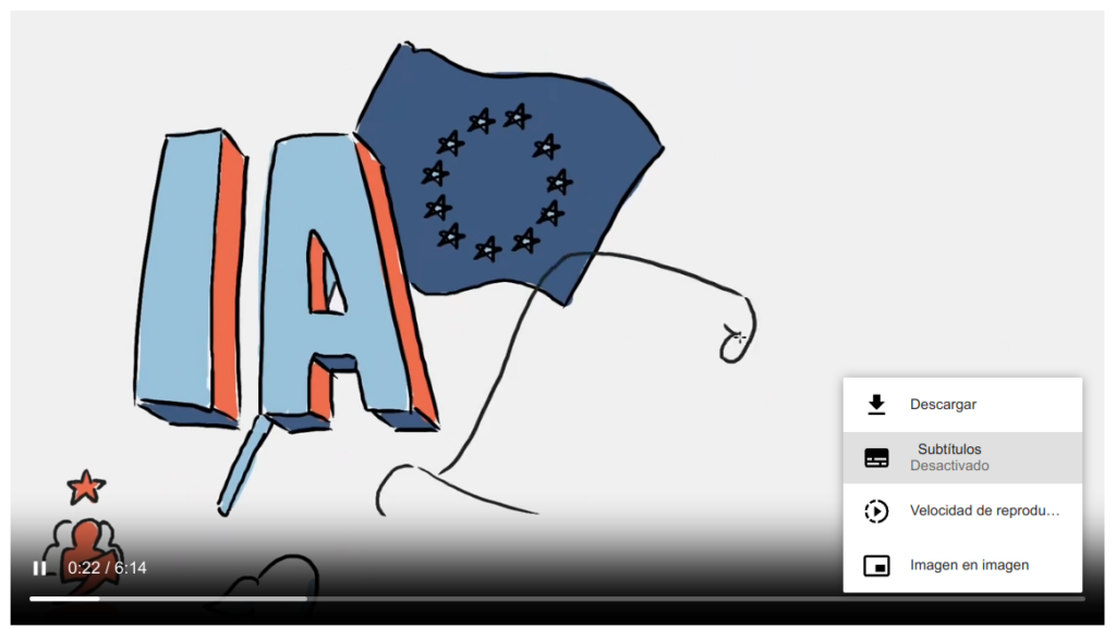 O reproductor dos vídeos conta coa opción para activar os subtítulos para quen os precise, dispoñible no botón de 3 puntos (na parte inferior dereita):