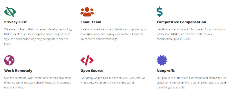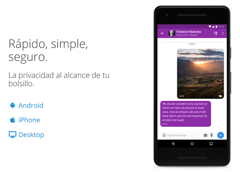 Signal, conta co apoio de The Guardian Project e de Edward Snowden. Comentan da aplicación que é unha solución perfecta debido ao seu cifrado de extremo a extremo e a súa tecnoloxía de código aberto.