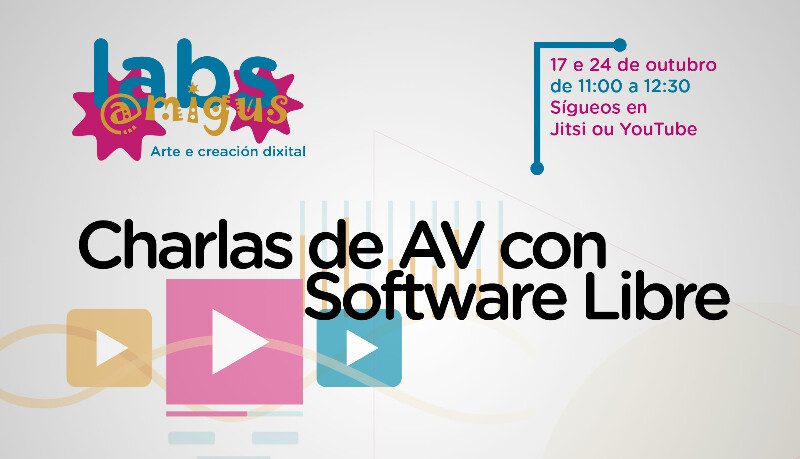 Os vindeiros sábados, 17 e 24 de outubro, a asociación Amigus realizarán dúas charlas de produción e edición de son e vídeo con ferramentas libres. Retransmitiranse por streaming e poderanse seguir por Jitsi ou YouTube.