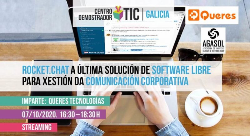 Rocket.Chat: A última solución de Software Libre para xestión da comunicación corporativa. Demostración en liña sobre a solución Rocket.Chat que terá lugar o 7 de outubro de 2020 de 16:30h a 18:30 horas.