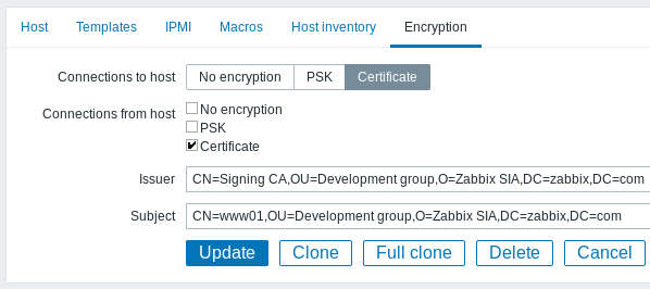 Aquí tamén Zabbix é moi adaptable ao entorno. O cifrado das comunicacións é opcional e pódese configurar a nivel de compoñentes individuais. Por exemplo, algúns proxies e axentes pódense configurar para usar cifrado baseado en certificado co servidor, mentres que outros poden usar un cifrado con claves precompartidas, outros axentes poderán seguir usando comunicacións en claro.