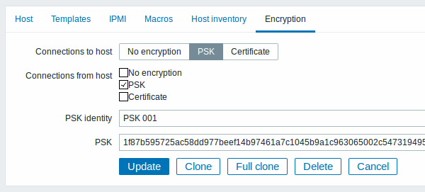 Zabbix soporta cifrado entre o servidor Zabbix, o proxy Zabbix e o axente Zabbix dende a versión 3.0. As comunicacións cífranse usando o protocolo TLS (Security Layer Security) versión 1.2 tendo dúas opcións a seguir: O cifrado baseado en certificado, similar aos certificados nas páxinas web, e o cifrado baseado en claves seguras precompartidas (PSK).