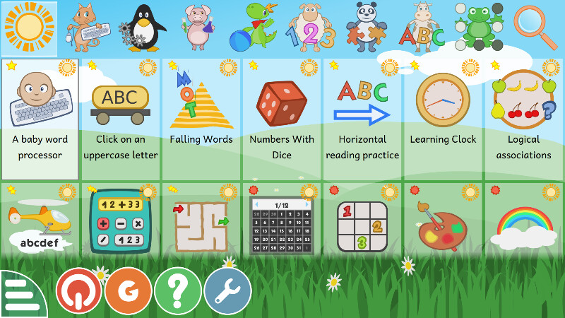 As aplicacións que de momento aparecen en KDE para pekes son: GCompris, Kletters, Ktumberling, KolourPaint e a serie de KDE Games.